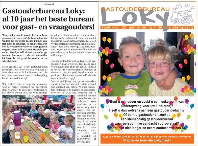 Uiteraard voldoen de gastouders van Loky aan alle wettelijke eisen. “Ze hebben minimaal een opleiding Helpende, Zorg en Welzijn niveau 2, maar vaak ook een pedagogische opleiding. Vanzelfsprekend moeten ze in bezit zijn van een verklaring van goed gedrag en een geldig EHBO-diploma voor kinderen. Loky verzorgt op dat gebied ook de jaarlijkse herhalingscursus. Andere bijspijkeravonden die afgelopen jaar zijn georganiseerd gingen bijvoorbeeld over Welbevinden, Kindermishandeling en Brandwonden. Hier worden dan gastdocenten voor ingehuurd”, aldus van Kessel. Het gebied waarin Loky zich concentreert is Beverwijk, Uitgeest, Heemskerk en Zaanstad-Noord. Het betrekken van Zaanstad en Purmerend zou een mooie aanvulling zijn op het gebied waar Loky nu al werkzaam is. Voor meer informatie zie: www.loky.nl
